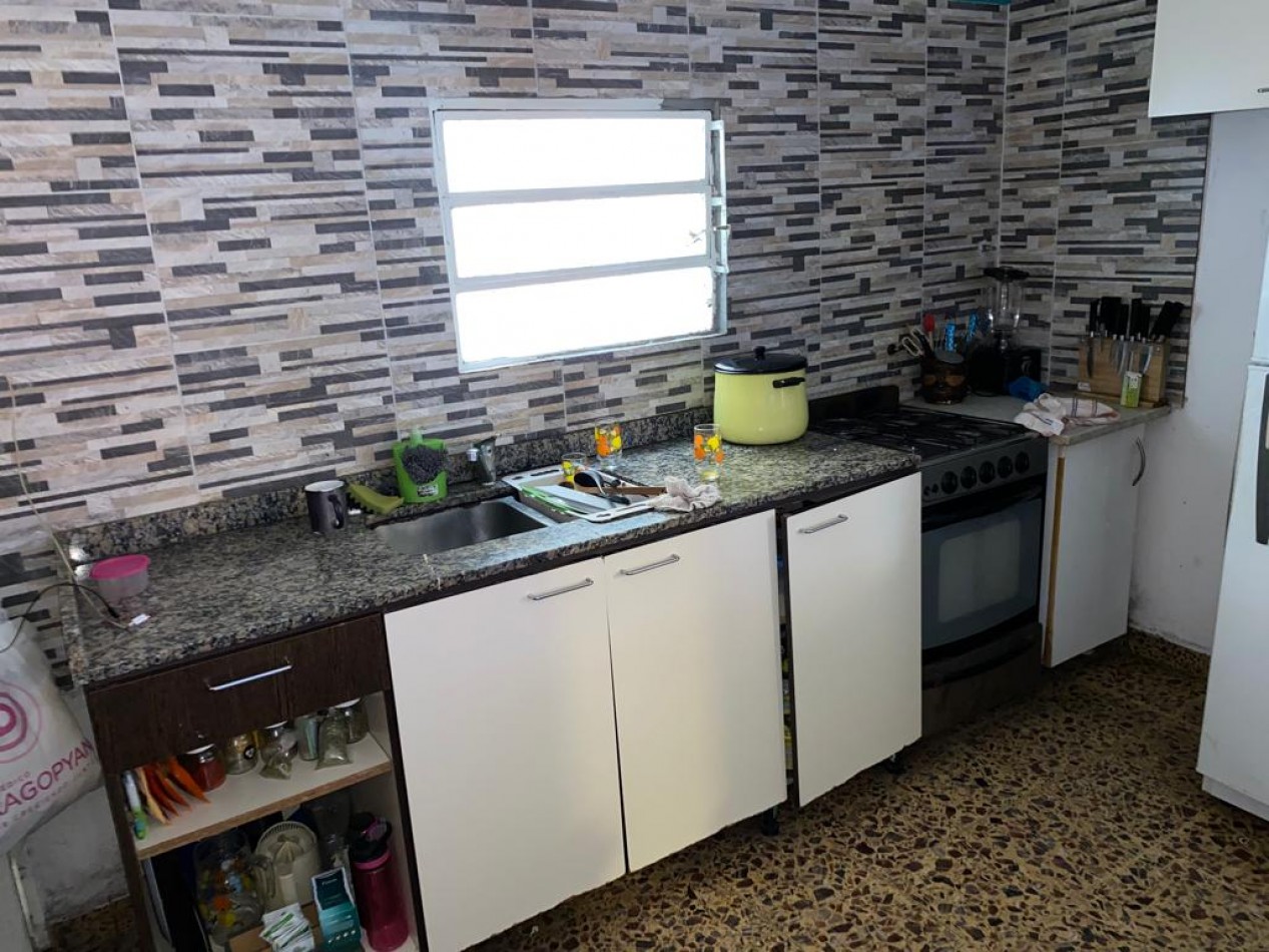 De frente a la izquierda acceso para auto y a la casa de 3 ambientes a refaccionar. Por la puerta del frente a la derecha pasillo y con ingreso a un deposito amplio con 2 dormitorios. Siguiendo por el pasillo ingreso al departamento de 3 ambientes. Cuenta con una cocina comedor y dos dormitorios mas baño. Siguiendo por el pasillo al fondo con entrada individual casa con patio y pileta, 2 dormitorios, cocina comedor y baño.