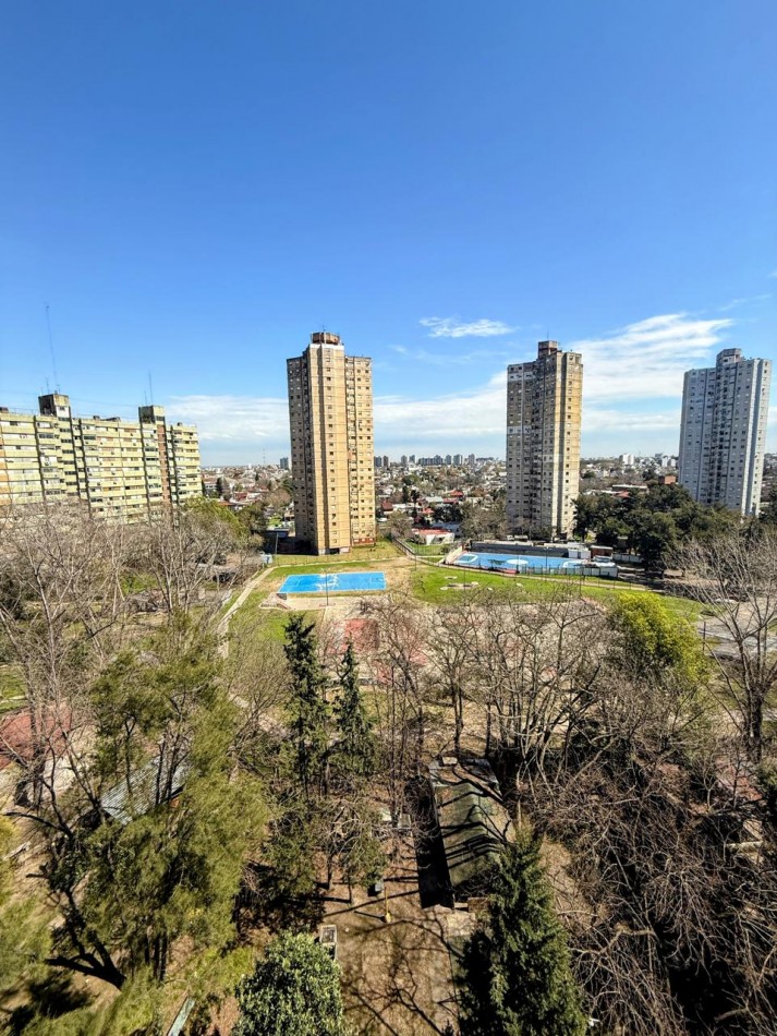 Excelente departamento ubicado en el complejo habitacional "Lugano 1 y 2". Se encuentra ubicado en el edificio N° 39, situado en la principal arteria del barrio, frente a coto y banco ciudad. Piso 8vo con vista al contra frente