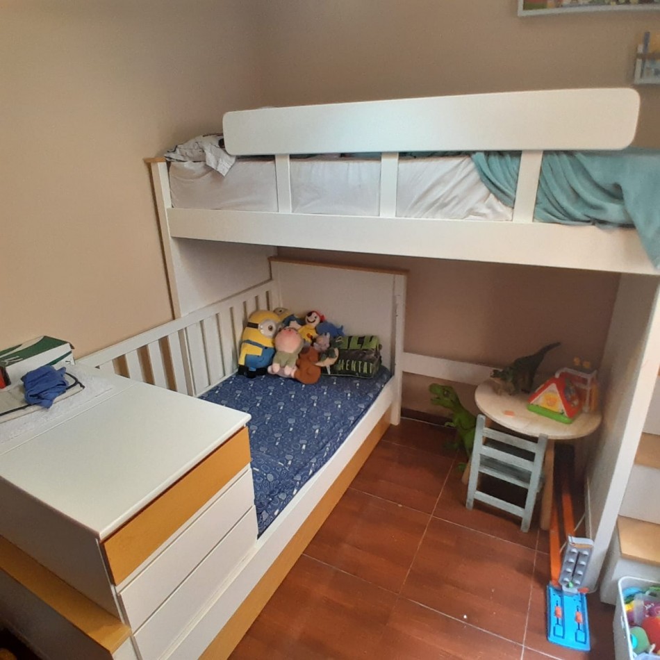 Compuesto por: dos dormitorios, cocina comedor, baño y dos patios.